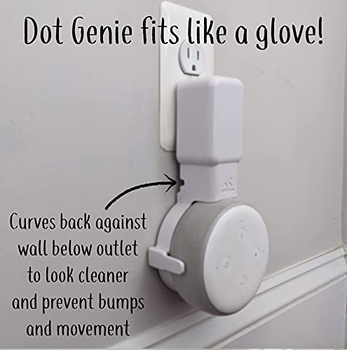 Dot Genie | Dot 3rd Wall Mount [New 2021 Rectangular Plug] The Original Outlet Hanger | No Muffled Sound | Exposed Speaker Grill, Mics, and Lights | Designed in USA (White)