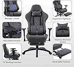 Dowinx Gaming Chair Ergonomic Retro Style Recliner with Massage Lumbar Support Office Armchair for Computer PU Leather with Retractable Footrest Grey