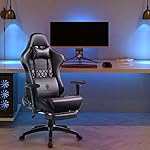 - 【MULTI FUNCTION】 360° swivel and smooth racing caster wheels for mobility; 90°-180° reclining for working, gaming, reading or napping; 20° controllable rocking and retractable footrest for relaxing; Adjustable seat height, 350 lbs capacity; head pillow and lumbar pillow for all body shapes.