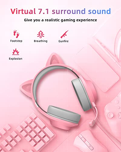 - 【Cute Cat Ear Appearance】 With a pink outlook and the detachable cat ears, this headset forms your gaming set-up to a new level of kawaii, automatically to attract everyone's attention.