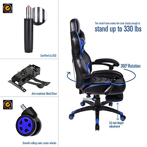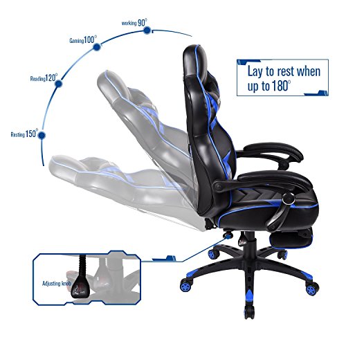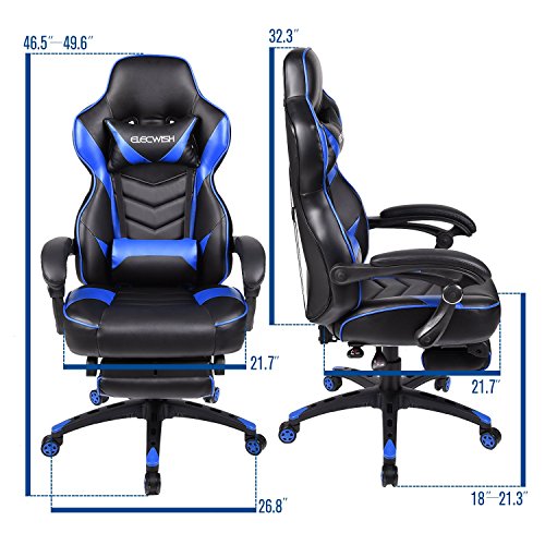 ELECWISH Ergonomic Computer Gaming Chair, PU Leather High Back Office Racing Chairs with Widen Thicken Seat and Retractable Footrest and Lumbar Support, Large, Blue