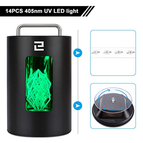 - 【14PCS 405nm LED Lamp】ELEGOO curing box built in 14pcs 405nm UV LED beads to fast cure and evenly illuminate printed models.