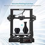 - 【Smarter 3D printing】Once a print is complete and the nozzle temperature drops below 50° Celsius, the cooling fans of the nozzle and the motherboard will automatically stop working, saving power and extending their lifespan. Resume printing from where it left after an unexpected power outage or faulty operations. MK8 extruder has wide material compatibility and equipped filament detection sensor will pause printing when filament runs out.