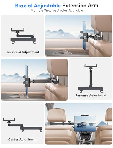 ELWEY iPad Holder for Car Backseat, Headrest Tablet Holder for Car Back Seat, [3 in 1 Extension Arm] Adjustable iPad Car Mount for Kids, for 4.7-13" Device Like iPad Pro, Air, Mini, Galaxy, Fire HD