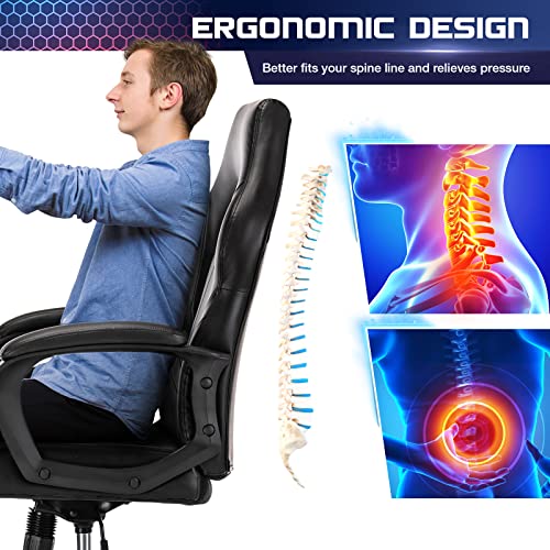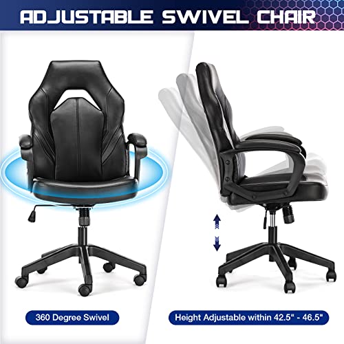 Ergonomic Computer Gaming Chair – PU Leather Desk Chair with Lumbar Support, Swivel Office Chair Executive Chair with Padded Armrest and Seat Cushion for Gaming, Study and Working