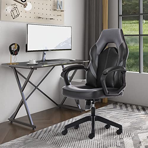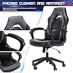 Ergonomic Computer Gaming Chair – PU Leather Desk Chair with Lumbar Support, Swivel Office Chair Executive Chair with Padded Armrest and Seat Cushion for Gaming, Study and Working
