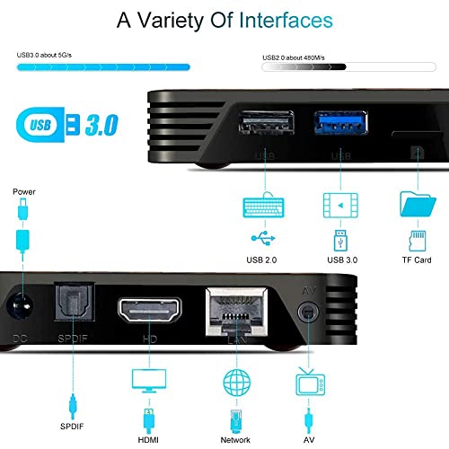- đăLarge storage spaceă The latest Smart TV box has 4GB RAM, 128GB RAM, and the largest storage capacity in the market, allowing you to download and install more applications to meet various needs and play videos more smoothly. You can also use TF card to expand storage (maximum 64GB, ROM128 not included)
