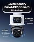 - Revolutionary Triple-Lens Bullet-PTZ Camera: A single groundbreaking device that replaces and outperforms separate bullet and PTZ cameras. The upper 4K bullet lens delivers a 130° fixed wide view, while the lower 2K dual-lens PTZ offers 360° smart tracking and zoom.