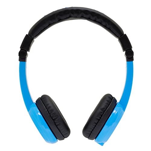 ONANOFF BuddyPhones Explore Foldable, Volume-Limiting Kids Headphones with Travel Bag, Built-In Audio Sharing Cable with Mic, Compatible with Fire, iPad, iPhone, and Android Devices, Blue