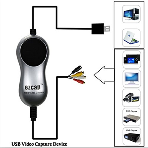 Ezcap USB Video Audio Capture Recorder Grabber Adapter Cad VHS to DVD Maker Converter with Snapshot to Take Picture for Win7 Windows 8 10 Systems