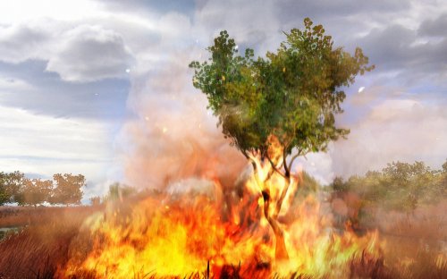 - Dynamic environment, including day-night cycles and fire propagation