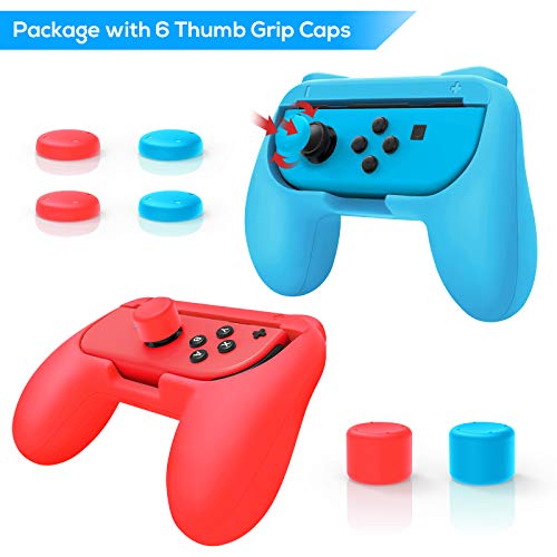 FASTSNAIL Grips Compatible with Nintendo Switch for Joy Con & OLED Model for Joycon, Wear-Resistant Handle Kit Compatible with Joy Cons Controllers, 2 Pack(Blue and Red)