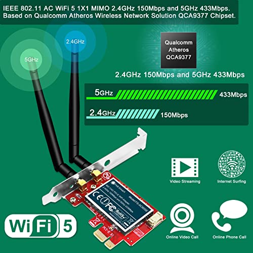 FebSmart Wireless-AC 1200Mbps PCIE Wi-Fi Card with WiFi Stereo Adapter for Windows 11, 10 (32/64bit), Windows 8.1 64bit and Windows Server 2012, 2012R2, 2016, 2019, 2022 Desktop PCs (FS-AE120SE)