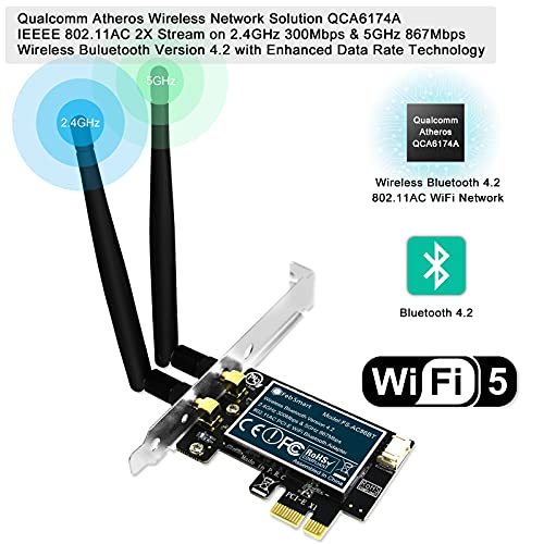 FebSmart Wireless AC 1200Mbps PCIE Wi-Fi Adapter for Gamming,Video Streaming on Windows Server, 7, 8, 8.1, 10(32/64bit) Desktop PCs,PCIE WiFi Card (FS-AC86BT)