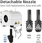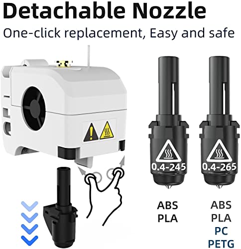 - ✔ High temperature nozzle --- AD3 Pro equipped with 245℃ / 265℃ 2 type detachable nozzle, support fast heating up to 265℃, allows great print quality with PLA, ABS, PC, PETG