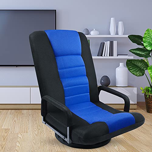 Floor Gaming Chair with Armrest Swivel Floor Sofa Adjustable Lazy Sofa Lounger Folding Video Game Chair for Adults Teens, Blue