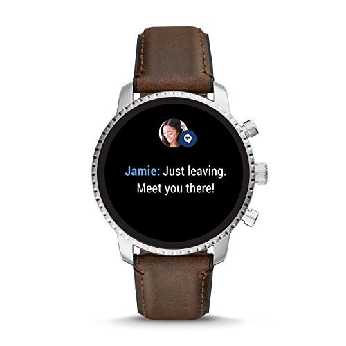 Fossil Men's Gen 4 Explorist HR Heart Rate Stainless Steel and Leather Touchscreen Smartwatch, Color: Silver, Brown (Model: FTW4015)