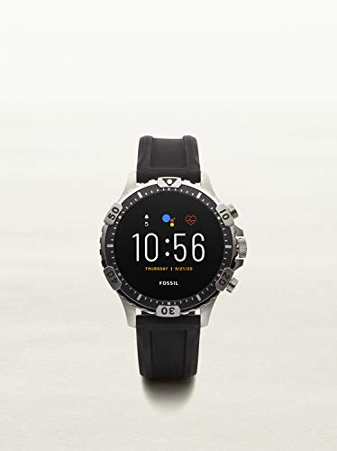 Fossil Unisex 46MM Gen 5 Garrett HR Heart Rate Stainless Steel and Silicone Touchscreen Smart Watch, Color: Silver, Black (Model: FTW4041)