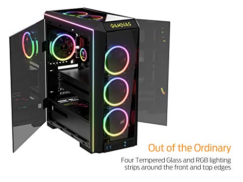 GAMDIAS RGB Gaming Mid-Tower Case Four-Sided Tempered Glass Four LED Strip Switchable IO Port with Three RGB Fans Cases Sync Motherboard TALOS P1A