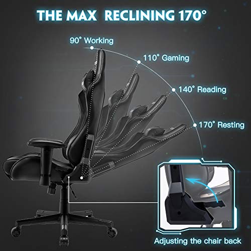 - Comfortable Gaming Chairs: Headrest pillow & lumbar cushion, wider armrests with ergonomic shape, larger-size seat cushion, wider chair back provides luxury and comfort, whether it's used for intense gaming sessions and climbing to the top of the leaderboards, or long work days
