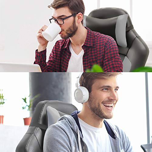 Gaming Chair, Cadcah Ergonomic Computer Chair Reclining High Back Office Chair Height Adjustment Desk Chair with Armrests Headrest and Lumbar Support PC Gaming Chair for Adults Teens Men Women (Grey)