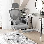 OLIXIS Gaming Ergonomic Foot Rest Reclining, High Back Mesh Home Office Computer Desk Chair with Wheels, Adjustable Headrest, Lumbar Support, Padded Arms, Grey