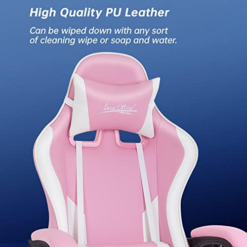 Gaming Chair Office Chair Desk Chair with Footrest Lumbar Support Headrest Armrest Task Rolling Swivel Ergonomic E-Sports Adjustable PC Gamer Chair(Pink)