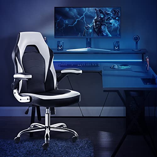 Gaming Chair - Office Chair Mid Back Computer Chair Desk Chair with Flip-up Armrest and Height Adjustable Splicing PU Leather Swivel Home Office Desk Chair with Lumbar Support for Adults