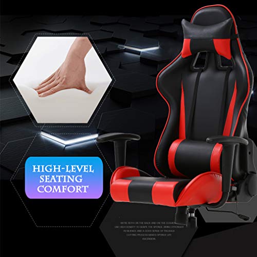 Gaming Chair Racing Office Chair Massage Swivel Chair High Back PU Leather Executive Rolling Task Adjustable Computer Chair with Lumbar Support Headrest Armrest Desk Chair for Adults Women, Red