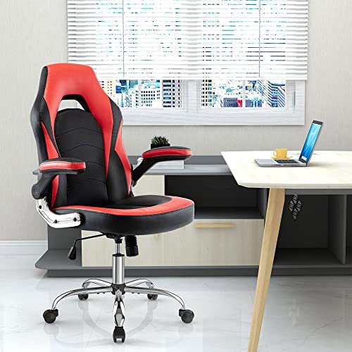 - Ergonomic high-back computer chair optimizes the way you work or game with flip-up armrest for elbow relief