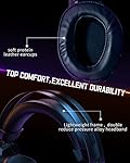 - 【The ideal gaming headset - Top Comfort】: The ideal gaming headset must be comfortable to wear for long periods of time. Lightweight frame, double reduce pressure headband with soft protein leather ear cups, so much more comfortable than other gaming headphones, the smaller burden keeps long time gaming.