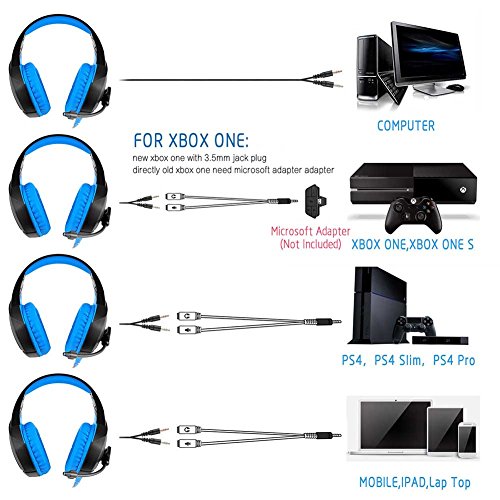 Gaming Headset with Mic for PS4,PC,Xbox One, Laptop Sound Clarity Noise Isolation LED Lights Headphone Soft Comfy EarPads with Volume Control Omnidirectional Microphone Gamer for Smartphone,Computer