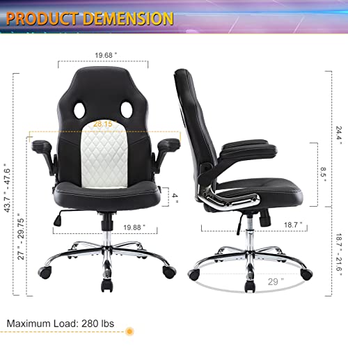 Gaming Office Chair - Ergonomic Executive Swivel Computer Desk Chair, High Back Adjustable Task Chair with Flip-up Armrests and Lumbar Support for Working, Studying, Gaming