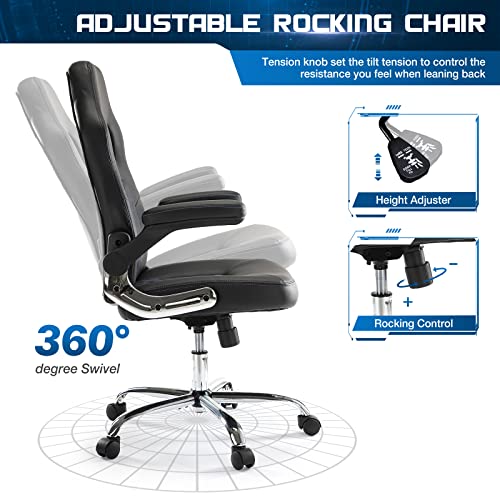 Gaming Office Chair - PU Leather Executive Swivel Computer Desk Chair with Flip-up Armrests and Lumbar Support for Working, Studying, Gaming