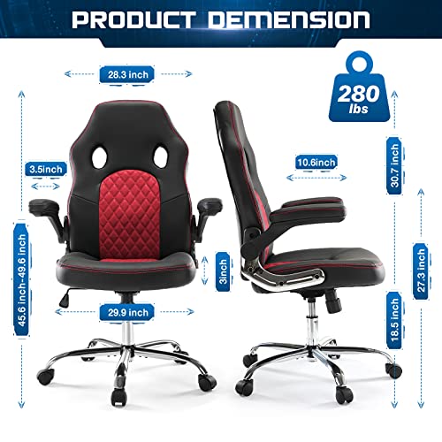 Gaming Office Chair - Ergonomic Executive Swivel Computer Desk Chair, High Back Adjustable Task Chair with Flip-up Armrests and Lumbar Support for Working, Studying, Gaming