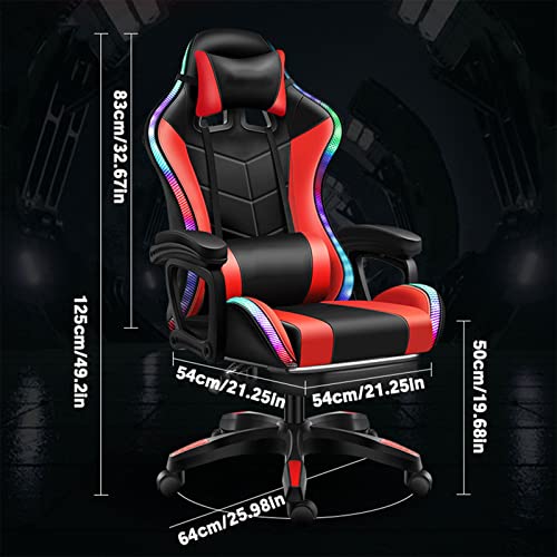 - [LED Lights Gaming Chair] This is a game chair with footrest. Comfortable and ergonomic design, the product has the characteristics of colorful light bar design, 360-degree rotation, adjustable height, retractable footrest, adjustable headrest, angle adjustment. This Reclining chair can provide the most comfortable experience whether it is used in the office or in the game, and double your efficiency.