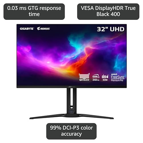 - COMPETITIVE EDGE WITH 240HZ REFRESH RATE AND 0.03MS RESPONSE TIME – Achieve lightning-fast responsiveness and ultra-smooth motion clarity with an ultra-high 240Hz refresh rate and 0.03ms GtG response time. Whether you’re in high speed FPS battles or intense esports competitions, the AORUS FO32U2 ensures every frame is delivered with precision, giving you the edge when milliseconds matter.