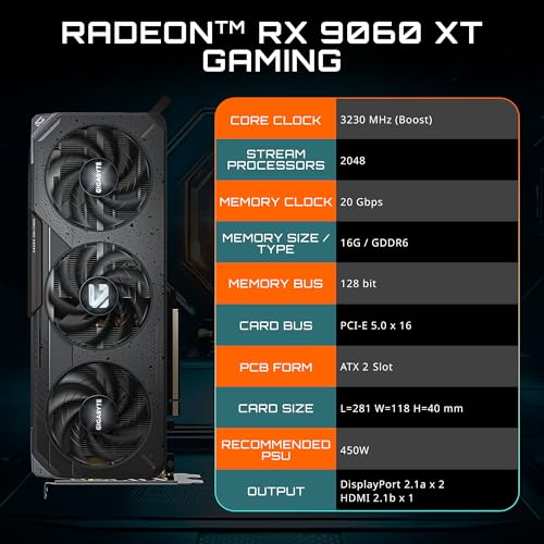 GIGABYTE Radeon RX 9060 XT Gaming 16G Graphics Card, PCIe 5.0, 16GB GDDR6, GV-R9060XTGAMING-16GD Video Card