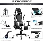 Gaming Chair Massage Office Computer Racing Chair for Adult Reclining Adjustable Swivel Leather Computer Chair High Back Desk Chair Headrest and Massage Lumbar Support Cushion, 1 Pack (White)