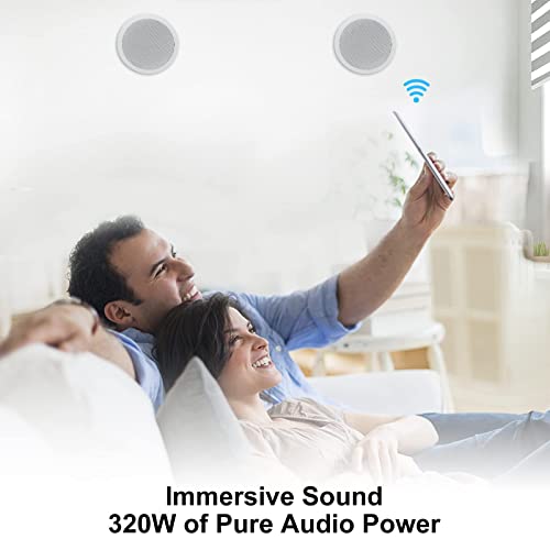 Herdio 6.5 Inch HCS-818BT Bluetooth Ceiling Speakers 320W 2-Way Flush Mount in Wall Speakers for Home Bathroom Kitchen Office with Full Range Superior Sound