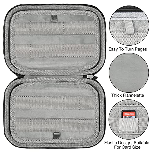 - Large Switch Game Storage Case: The interior is soft on 6 elastic pockets with built-in flaps to hold up 120 game cards or SD cards. Each slot is specifically designed for Nintendo Switch game cards storage to avoid movement, bumps and drops. Easily secure each game card in place and never lose it.