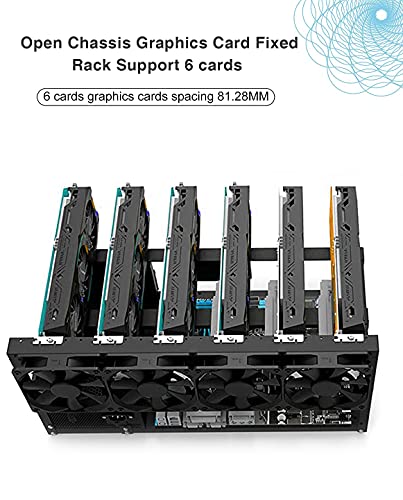 - COMPATIBLE SUPPORT: The Crypto Mining Frame support 6graphics cards, supports the largest motherboard size 305*245mm; supports 1 ATX power supply(Supports up to 260mm length), supports 4*12CM fans, support 1 HDD+2 SSD installation positions.