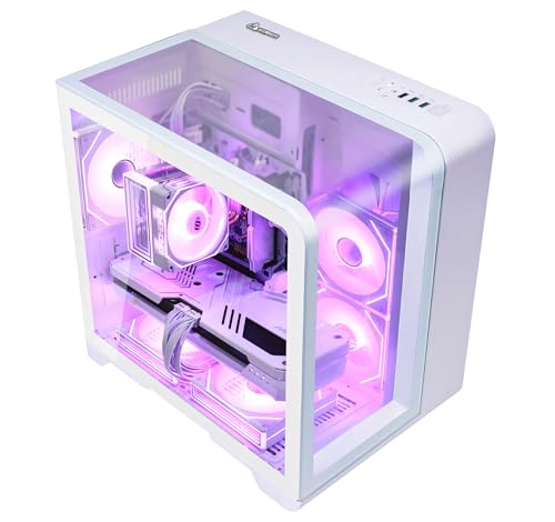 HOENGAGER Curved Pannel Gaming PC -AMD Ryzen 5 7600 6-Core 3.8 GHz-Radeon RX 9060 XT 8GB -32GB DDR5 6000 MHz RAM-1TB PCIe +2TB SATA SSD -WiFi & BT-Prebuilt PC Win 11 Pro Desktop Computer-White