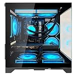 HOENGAGER Panorama Gaming PC Desktop AMD Ryzen 5 9600X 6-Core 3.9GHz, Radeon RX 9060 XT 16GB, 32GB DDR5 RAM 6000MHz,1TB PCIe +1TB SATA SSD, WiFi&BT Prebuilt PC 650W PSU,Liquid Cooler,Windows 11,