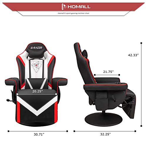 Homall Reclining Gaming Chair with Footrest Computer Ergonomic Gaming Recliner Racing Style PU Leather Gamer Chair with Cup Holder Headrest and Lumbar Support(White)