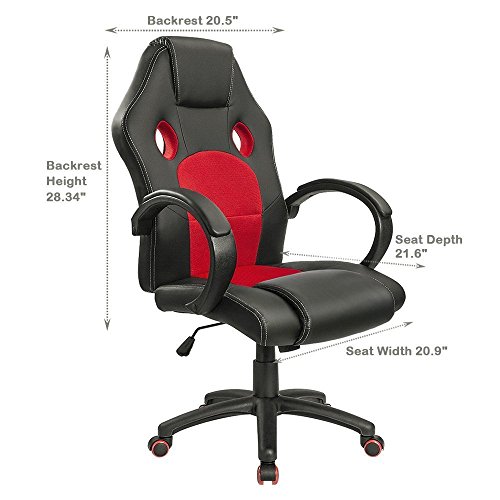 Homall Office Chair Ergonomic Racing Style Gaming Chair High Back Executive Computer Chair Swivel Task Chair Leather Cobra Mesh Desk Chair Padded Armrests Bucket Seat and Lumbar Support (Red)