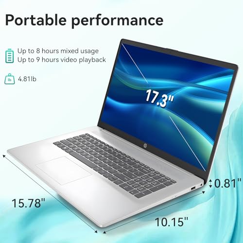 - 🖥️ Immersive 17.3" HD+ Anti-Glare Display: Work comfortably for hours with the large 17.3-inch HD+ screen. The anti-glare coating minimizes reflections and reduces eye strain, making it ideal for detailed document review, data analysis, and prolonged video conferences in various lighting conditions.