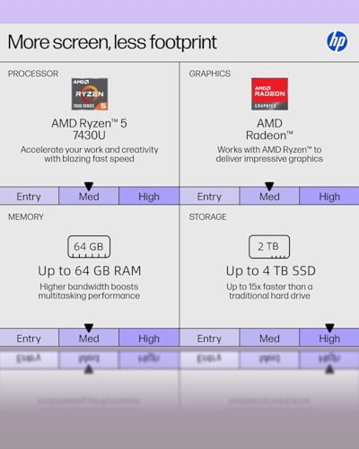 - ⚡【Power for Work, Play & Study】Driven by the AMD Ryzen 5 7430U 6-core processor (up to 4.3GHz) and Radeon Graphics, this hp laptop punches above its weight for spreadsheets, research, and HD streaming. Open more tabs, switch tasks, and compile reports without the stutter that slows momentum—an hp laptop built to keep pace from first email to final submission.