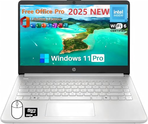 HP 2025 Latest 14" HD Laptop Computer, Intel Processor N150, 16 GB RAM, 384 GB Storage(128GB UFS+256GB MSD), with Office Lifetime License, Copilot AI, Wi-Fi 6, Webcam, Windows 11 Pro, w/Accessories