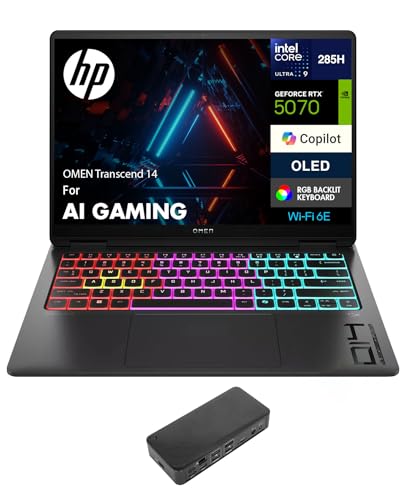 HP OMEN Transcend 14 AI Gaming Laptop 14.0" 2.8K (Intel Ultra 9-285H, GeForce RTX 5070 8GB, 32GB LPDDR5X, 1TB PCIe SSD, Win 11 Pro) w/USB-C Dock